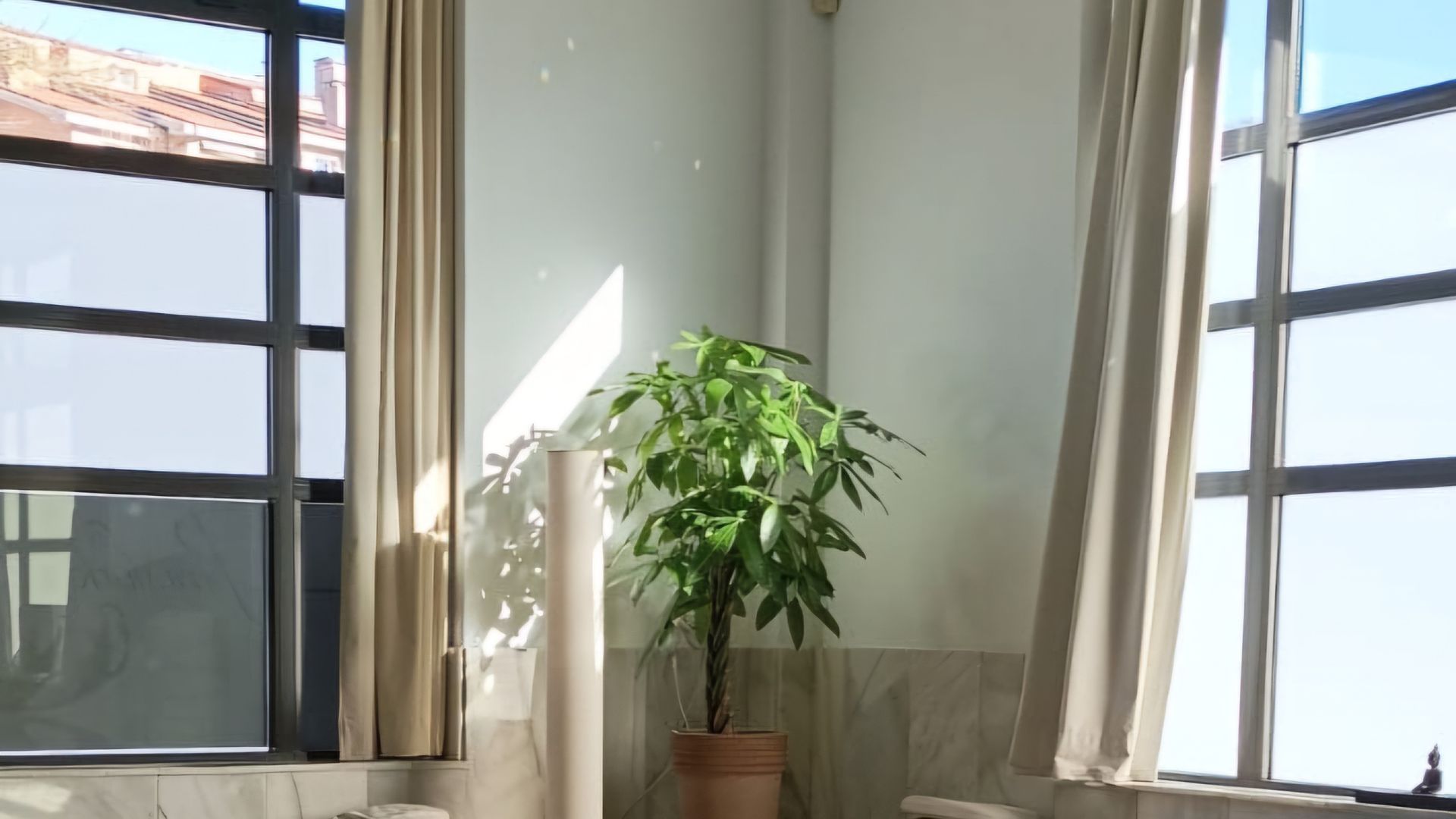 Es una sala cálida, diáfana, con mucha luz y ventilación natural.